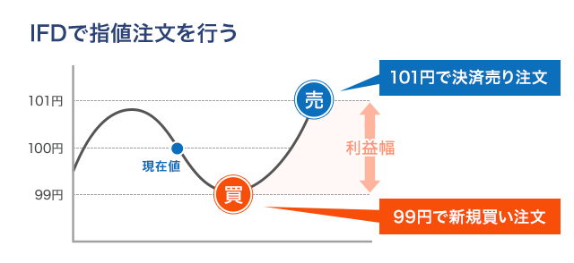IFD注文とは、新規注文と決済注文を同時に発注する注文方法です。具体的には「もし○○円になったら新規で買い、その後〇〇円になったら決済したい」という場面で使います。