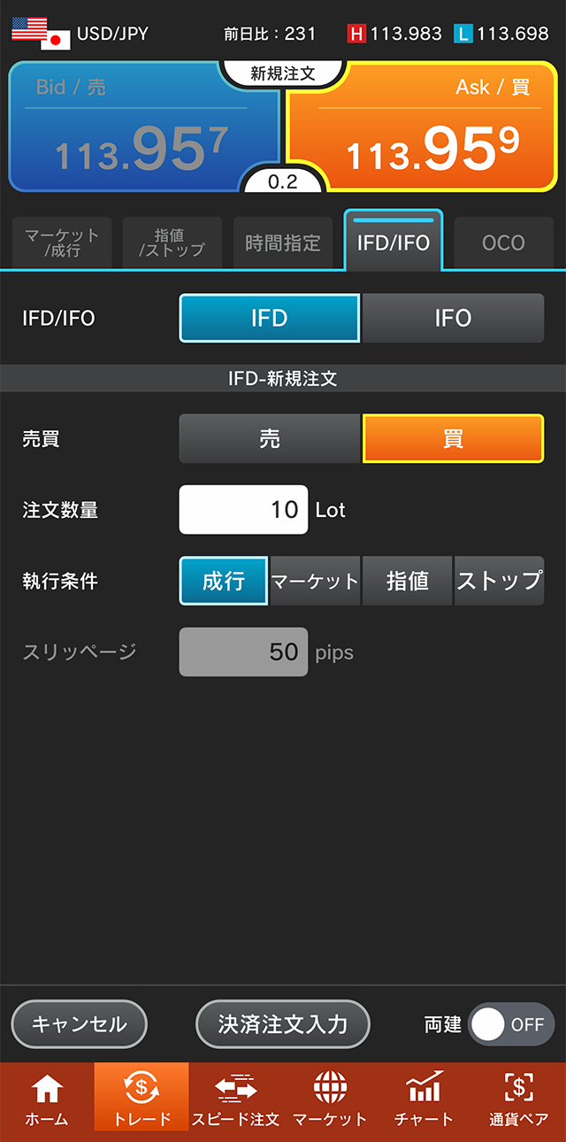 スマホアプリ「外貨ネクストネオ(GFX)」でIFD注文を発注するやり方