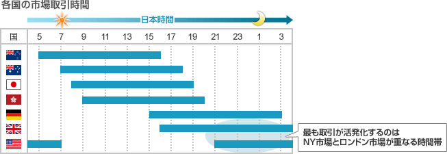 FXは取引時間の自由度が高く、原則として平日および祝日(元日は除く)のほぼ24時間取引が可能です(土日、メンテナンス時間を除く)。