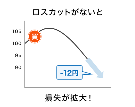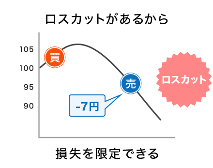 ロスカットによる決済で損失は確定するものの、原則として最低限の資金は温存されます。ただし、相場があまりにも急激な変動をした場合は、預けた保証金以上の損失が発生する可能性もあります。