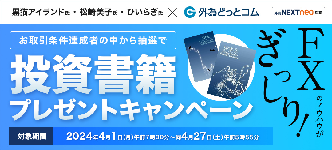 対象期間中にエントリーのうえ、『外貨ネクストネオ』にて所定の条件を達成された方の中から抽選で『SP本 A comprehensive approach to forex』&『SP本② A Deep Dive into Financial Landscape』セットをプレゼントいたします!