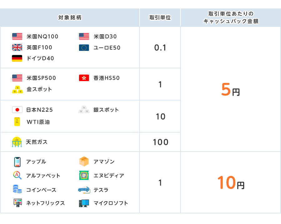 - 本キャンペーンは、上記「対象期間」中に『CFDネクスト』口座にてお取引をされた方で、かつ、所定の条件(上記)を満たされた場合に限り、特典の適用対象となります。
