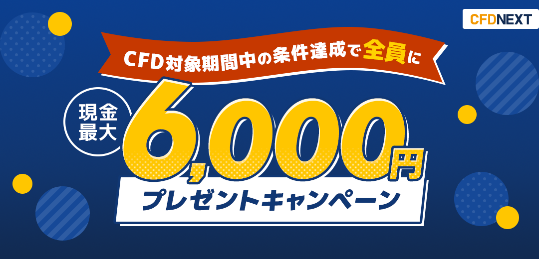 さらに、期間①にて入金対象となったお客様が期間②でも条件を達成された場合には現金2,000円を上乗せし、合計6,000円をプレゼントいたします。 - お取引は銘柄、取引チャネル、執行条件を問わず『CFDネクスト』における新規注文が対象です。