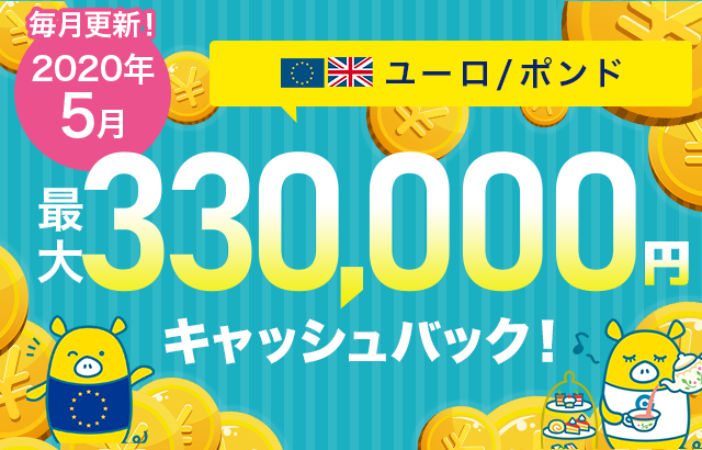 キャンペーン期間中の外貨ネクストネオでのEUR/GBP(ユーロ/ポンド)の取引高に応じて、最大33万円キャッシュバックいたします。