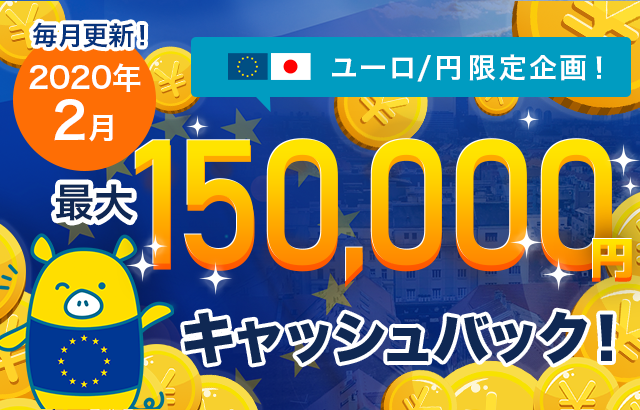 キャンペーン期間中の外貨ネクストネオでのEUR/JPY(ユーロ/円)の取引高に応じて、最大15万円キャッシュバックいたします。