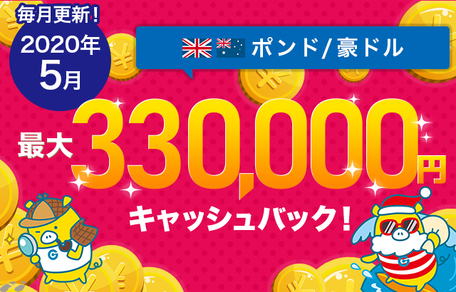 キャンペーン期間中の外貨ネクストネオでのGBP/AUD(ポンド/豪ドル)の取引高に応じて、最大33万円キャッシュバックいたします。