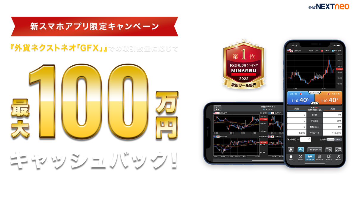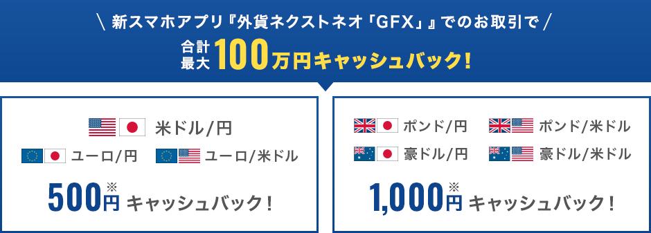 新スマホアプリ『外貨ネクストネオ「GFX」』での取引数量に応じてキャッシュバック!