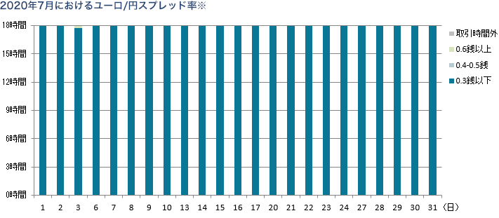 2020年7月1日~同7月31日の当社原則固定スプレッド提示時間帯(各営業日午前9時~翌午前3時)における提示実績。