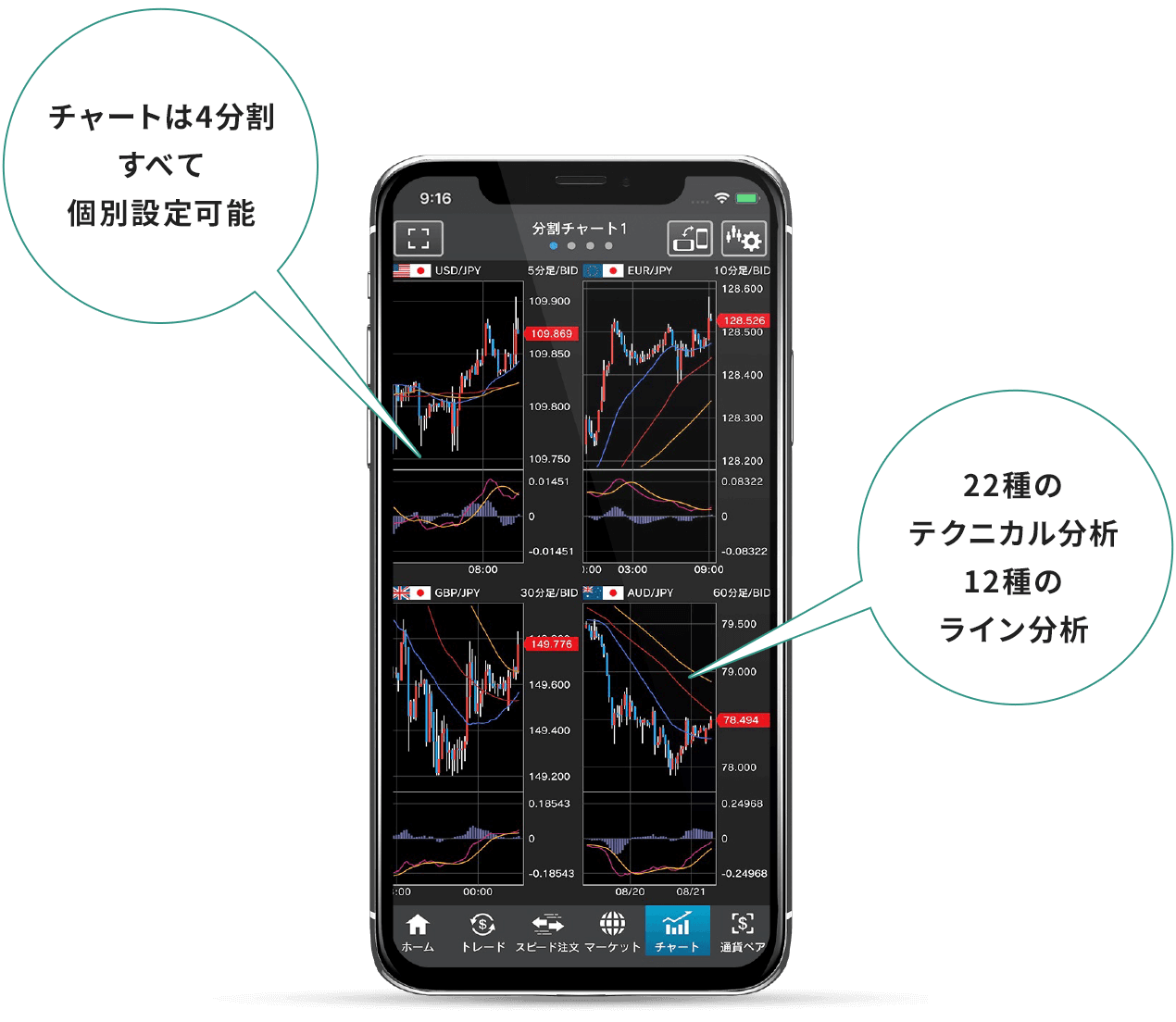 ※3 「業界最狭水準スプレッドキャンペーン」スプレッド(対象期間:2025年12月1日(月)午前9時00分~2025年12月25日(木)午前3時00分、掲示時間帯:対象期間中の各営業日午前9時~翌午前3時)。左記以外の時間帯のスプレッドは次の通りです。南アフリカランド/円:0.9~6.0銭、トルコリラ/円:1.7~6.0銭、ポンド/円:0.9~15.0銭、ユーロ/円:0.5~10.0銭、ユーロ/米ドル:0.4~8.0pips、NZドル/円:1.2~10.0銭、豪ドル/円0.7~10.0銭、豪ドル/米ドル:0.9~6.0pips、カナダドル/円:1.7~10.0銭