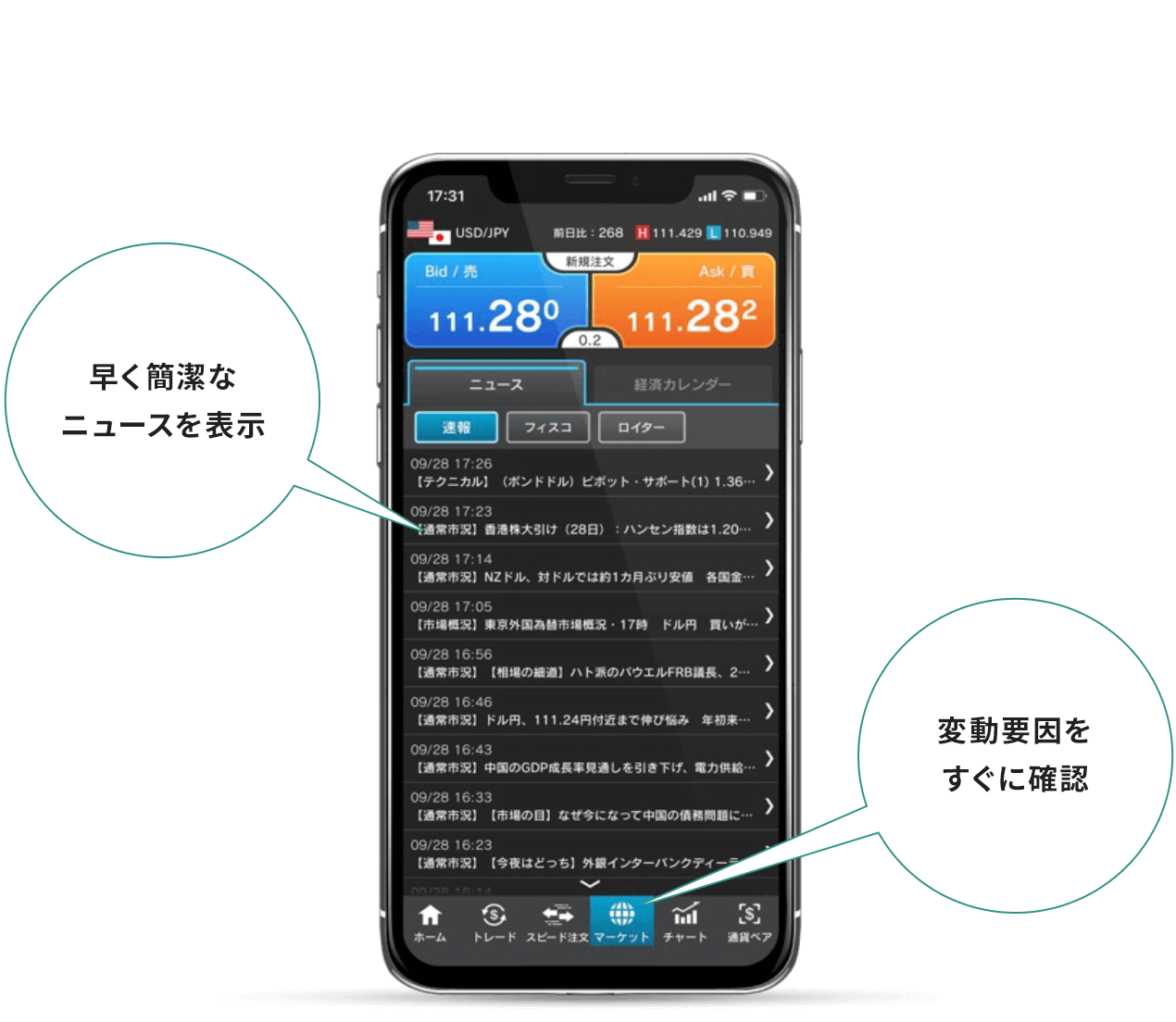 ※本取引ではお客様がお預けになった保証金額以上のお取引額で取引を行なうため、相場が思惑と反対方向に進んだ場合には、保証金額を上回る損失が発生する可能性がございます。またスワップポイントにつきましても、通貨ペアを構成する両通貨の金利差が逆転した場合には、支払いへと転ずる可能性がございます。