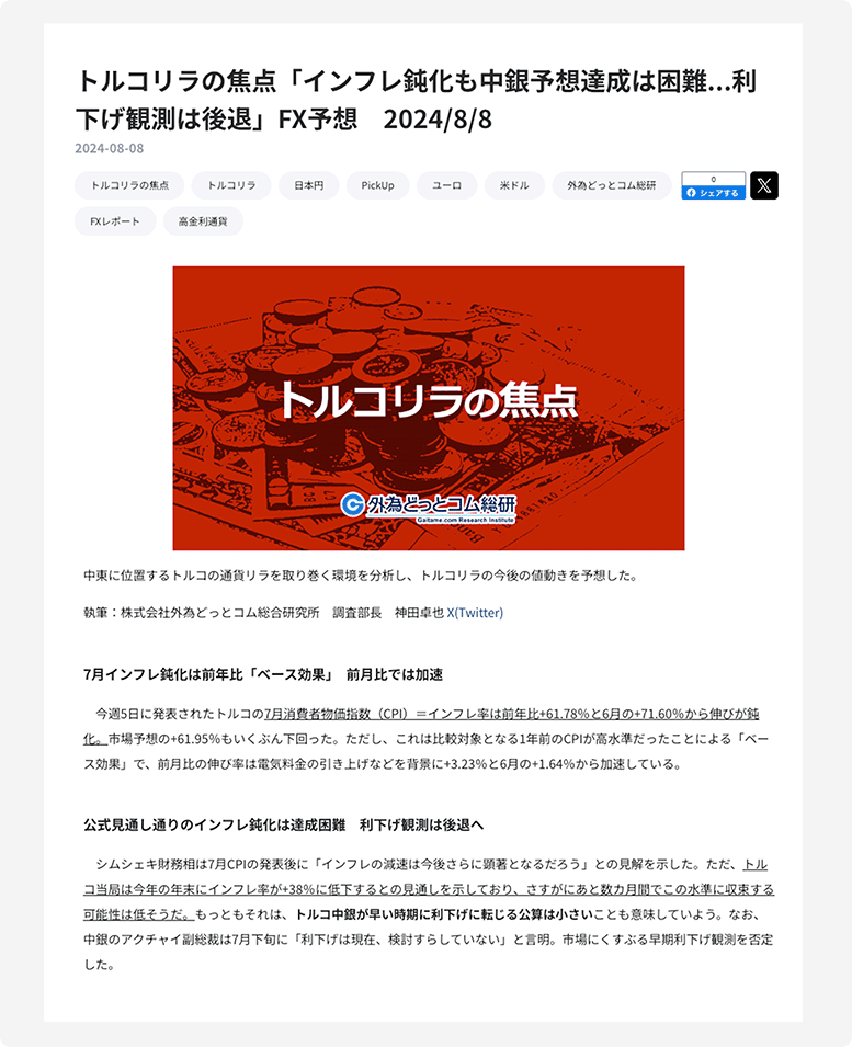 「MERHABA レポート」や「トルコリラの焦点」など、トルコリラに関するFXレポートも数多く取り揃えておりますので、是非、ご活用下さい。