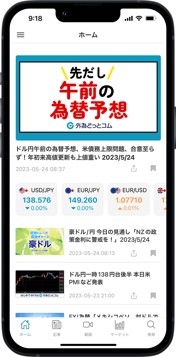 最新の為替ニュースやレポート・動画・マーケット情報からFX投資を学べる記事まで、すべてが無料で閲覧可能なマーケット情報アプリ。