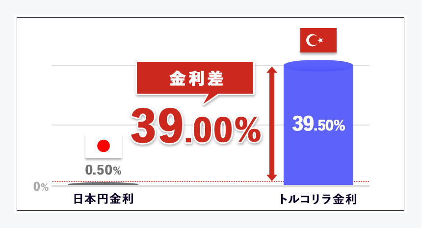 日本の低い政策金利に対し、トルコの政策金利は高く、