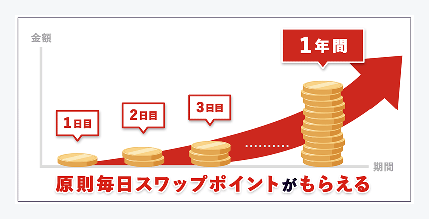 スワップポイントのメリットは、金利差がプラスであれば通貨を持っているだけでほぼ毎日利益を得られることです。