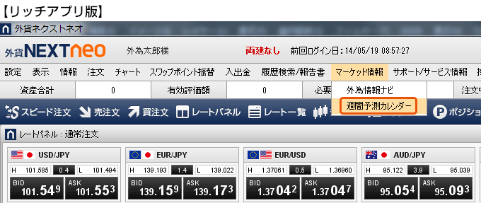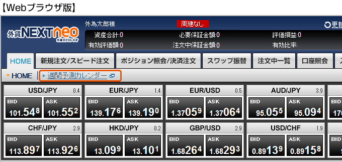 リッチアプリ版、Webブラウザ版それぞれに「経済指標 週間予測カレンダー」へのリンクを追加しました。