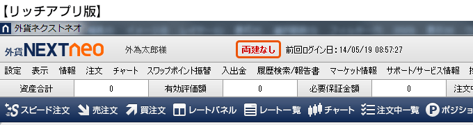 注文設定が「両建なし」の場合、表記を以下のように変更しました。