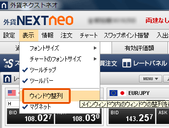 トレード画面(タブ)内にある各ウィンドウを等分して整列できる「ウィンドウ整列」機能を追加しました。