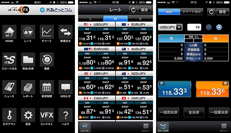 スマートフォンでは、アプリ「バーチャルFX」をご利用いただくことで、デモ取引を体験することができます。