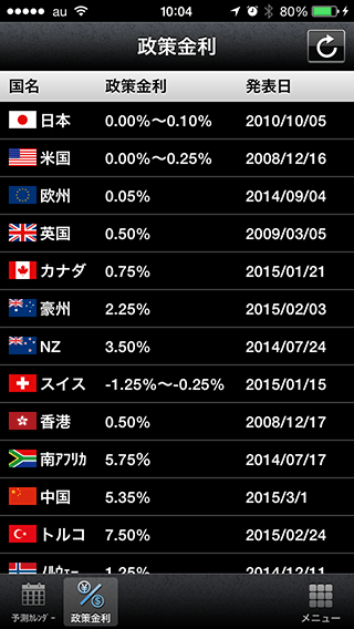 新しく追加された各通貨の政策金利も確認できるようにしてほしい。