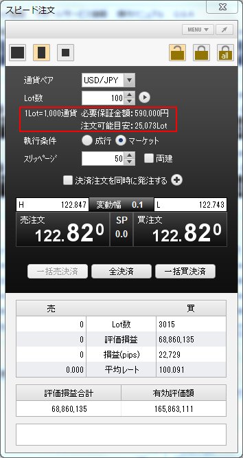 例えば100Lotの注文をしようと思った時、その際に必要な保証金額がいくらなのか、すぐにわかるような機能がほしい。