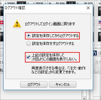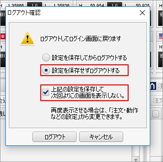 毎回設定を保存しないで、ログアウトする場合