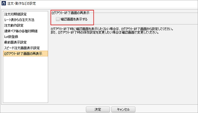 ログアウトする際に、設定を保存するしないを設定した上で、以後、表示しないことができるようにしました。