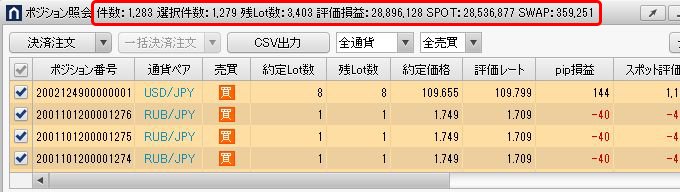 ポジション照会で選択したポジションの評価損益などがみれるようにしてほしい