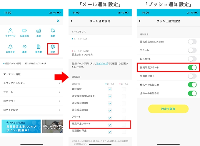 設定中の定期買付における残高不足を通知できるようになりました。(らくらくFX積立)