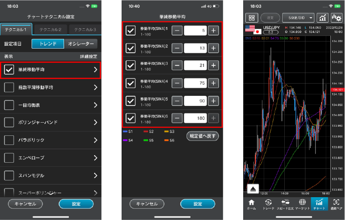 「RCI」で短期・中期・長期の3本表示ができるようになりました。チャートテクニカル設定から設定できます。
