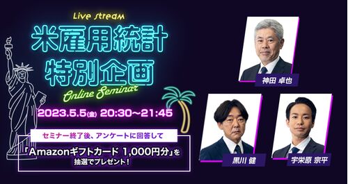 外為どっとコムでは、為替業界のみならず全てのマーケット関係者が注目する経済指標「米国雇用統計」を解説する無料オンラインセミナーを配信いたします。当日は、21時30分の「米雇用統計」発表の30分前からライブ配信を開始。今回は、大手邦銀で永くチーフ…