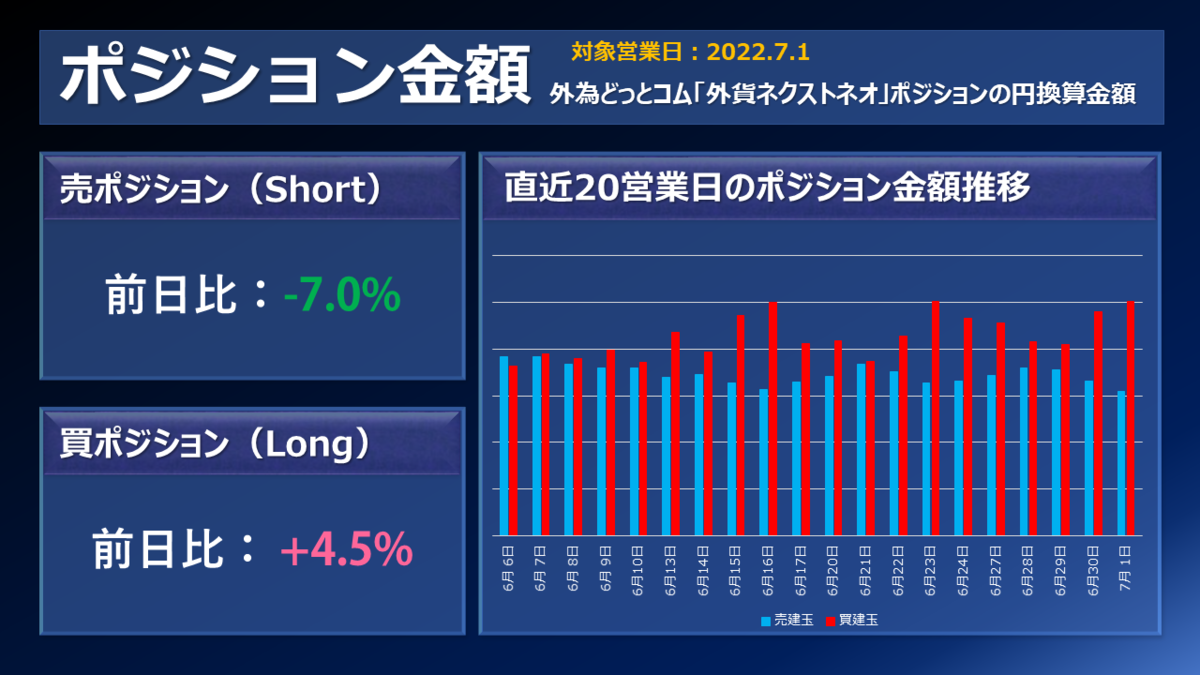 外為どっとコムのFX取引サービス「外貨ネクストネオ」主要通貨ペアのポジション増減(前日比)です。