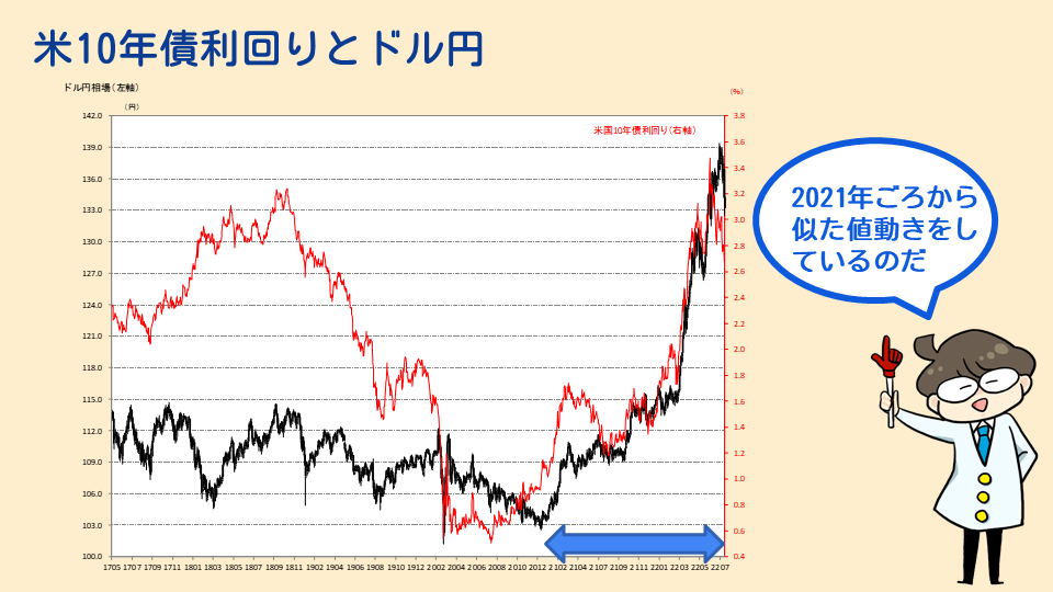 - 今ドル/円と似ている動きをしていると言われているのがアメリカの長期金利なのだ!