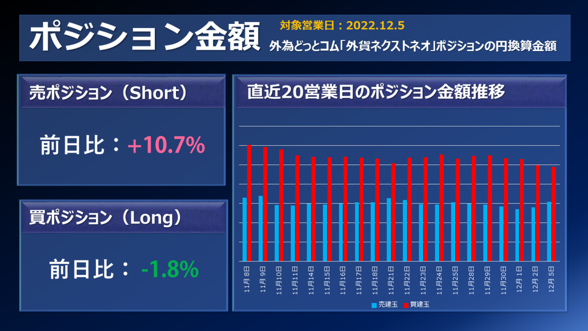 外為どっとコムのFX取引サービス「外貨ネクストネオ」主要通貨ペアのポジション増減(前日比)です。