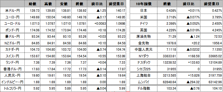 - ドル・円:米新規失業保険申請件数の急増を受けて139円85銭から138円81銭までドル安・円高で推移。