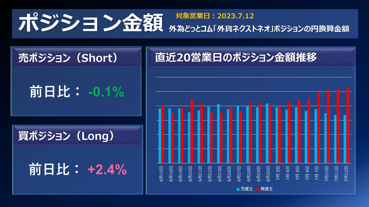 外為どっとコムのFX取引サービス「外貨ネクストネオ」主要通貨ペアのポジション増減(前日比)です。