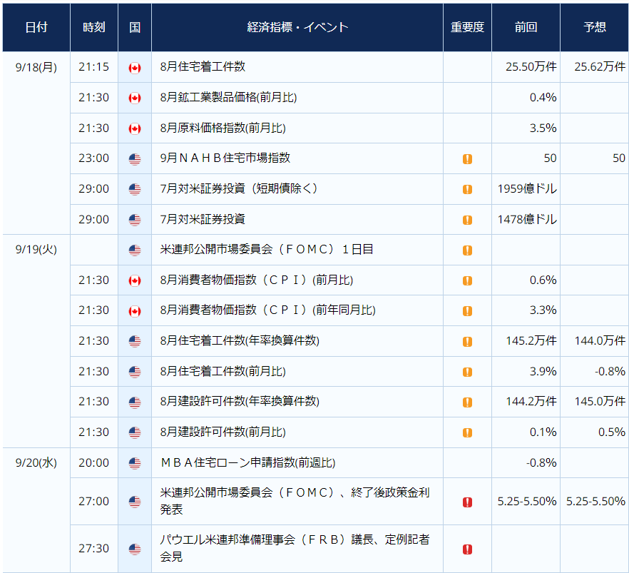 19-20日の米連邦公開市場委員会(FOMC)では政策金利が5.25-5.50%に据え置かれる公算です。焦点は政策金利見通しで、従来5.625%(5.50-5.75%)としていた年末時点の予測に修正があるのか注目が集まるでしょう。
