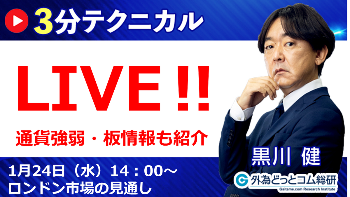 外為どっとコム総研のTEAMハロンズがお送りする「見通しズバリ!!3分テクニカル分析動画」。この番組は、TEAMハロンズ黒川が注目通貨ペアのテクニカル分析を3分でわかりやすく解説する番組です。