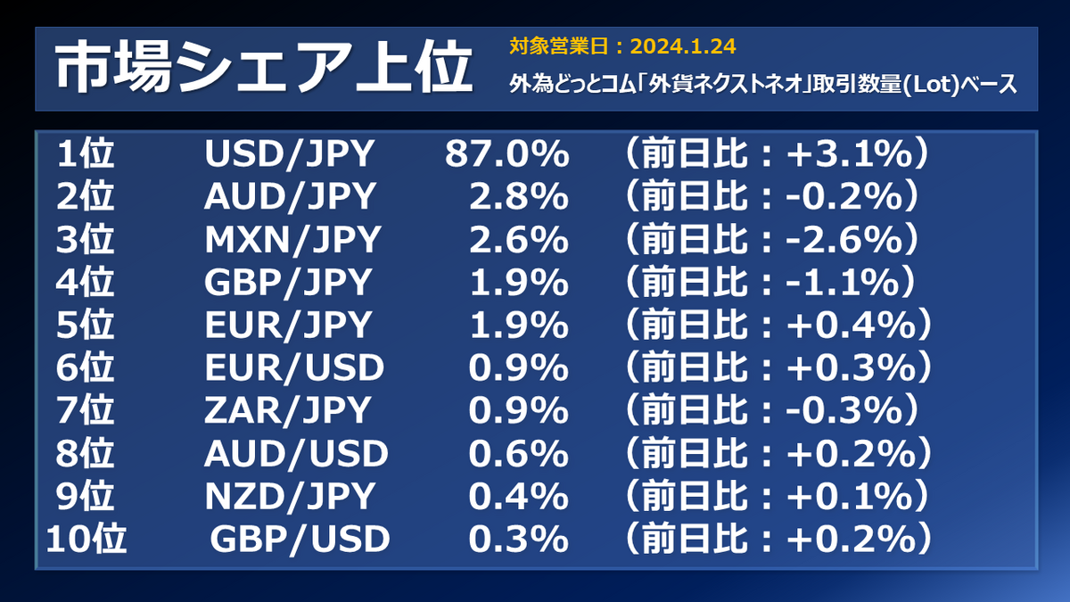 外為どっとコムのFX取引サービス「外貨ネクストネオ」取り扱い通貨30通貨ペアの内、取引量が多かった上位10位です。