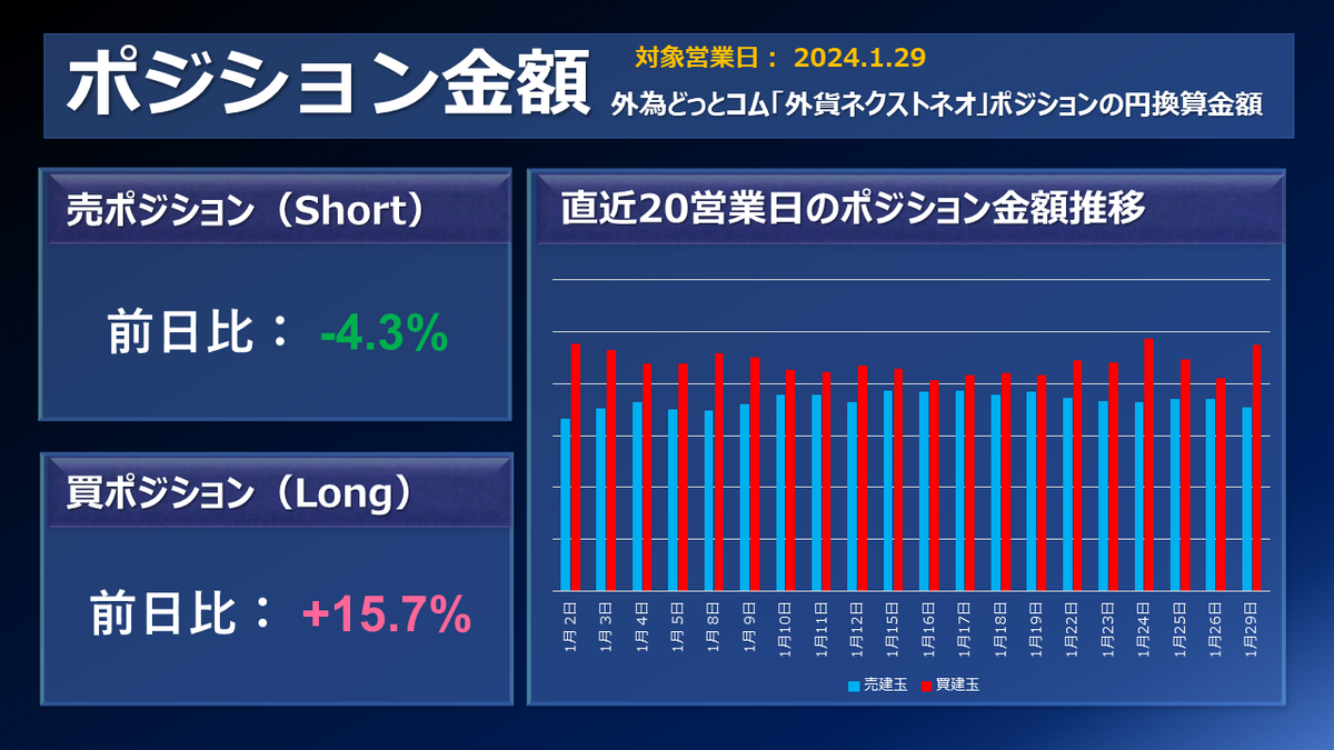 外為どっとコムのFX取引サービス「外貨ネクストネオ」主要通貨ペアのポジション増減(前日比)です。