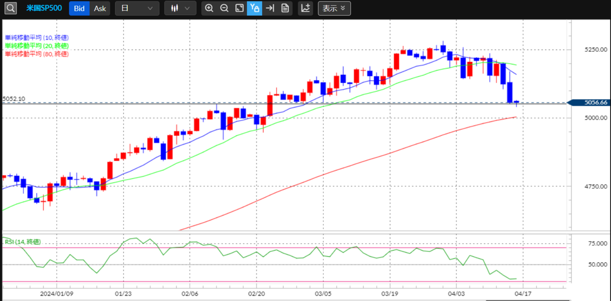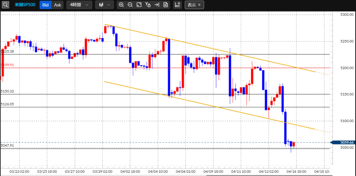 ■S&P500:5000ポイントへの下落が視野に…中東リスクが意識され上値が重い