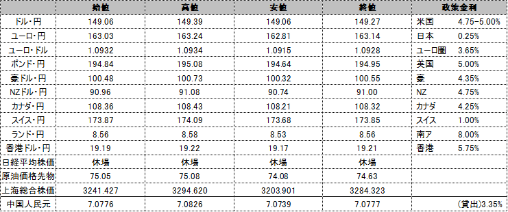 - ドル・円は強含み、149円06銭から149円39銭まで値上り。