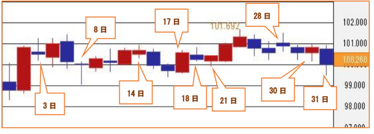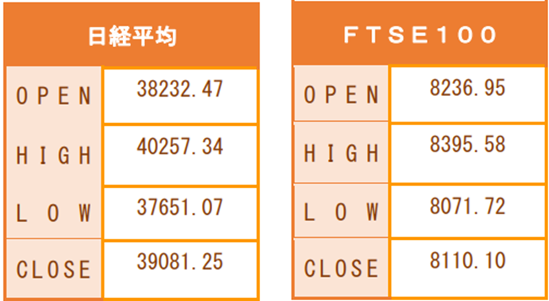 | 始値 | 高値 | 安値 | 終値 |