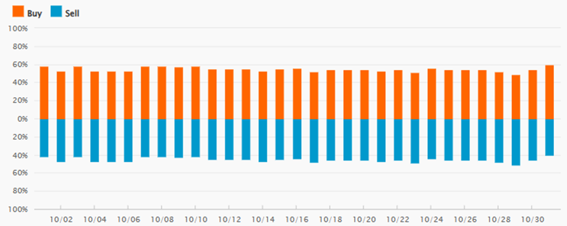 - ※ 外為どっとコムのFX口座「外貨ネクストネオ」でお取引をされているお客様のポジション保持情報の比率を表しています。