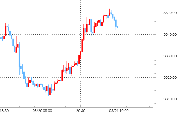 COMEX(ニューヨーク商品取引所)の金先物12月限は前日から29.80ドル(0.9%)上昇し、1オンス当たり3388.50ドルで取引を終了しました。