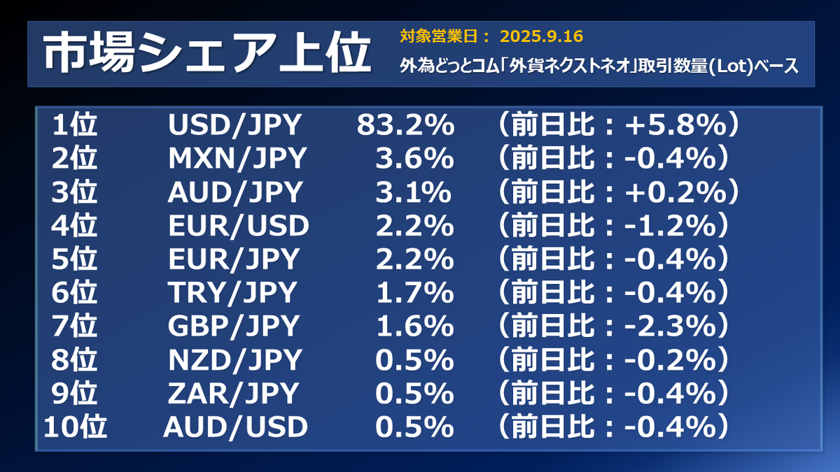 外為どっとコムのFX取引サービス「外貨ネクストネオ」取り扱い通貨30通貨ペアの内、取引量が多かった上位10位です。