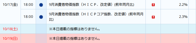 10/17◎ユーロ圏9月消費者物価指数・改定値