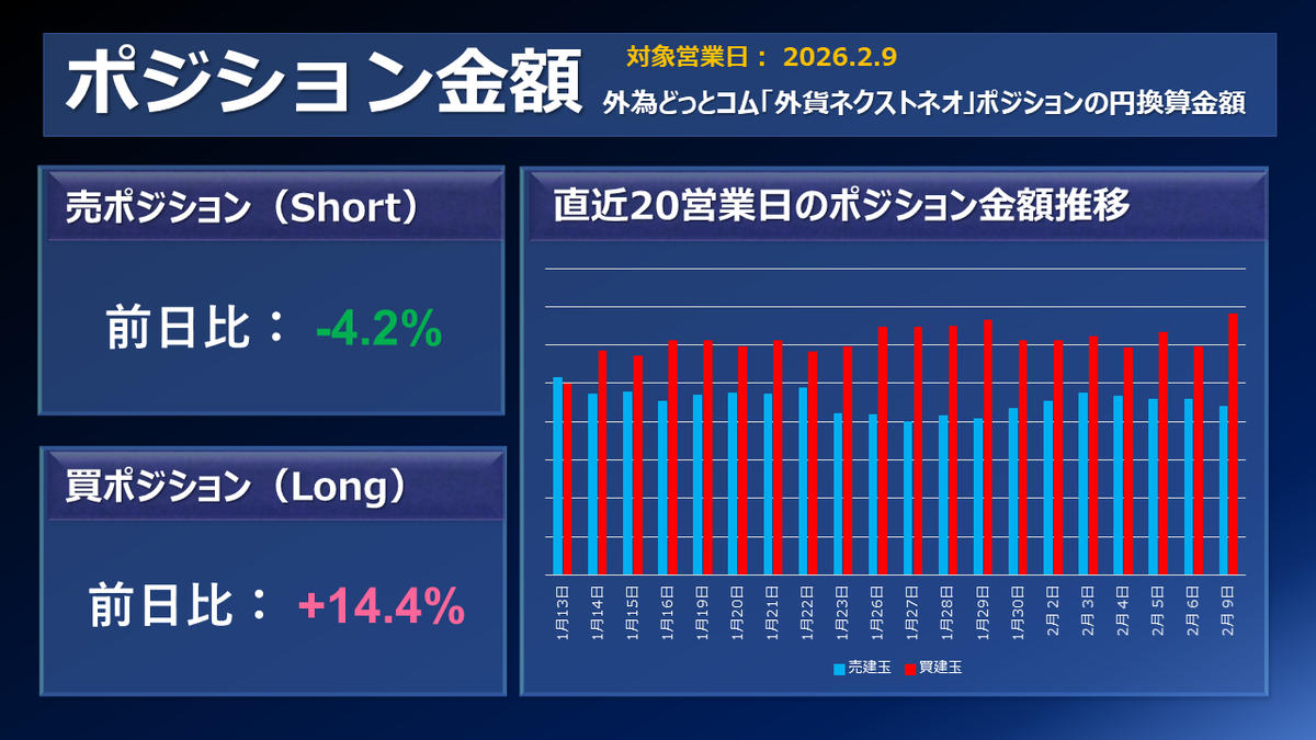 外為どっとコムのFX取引サービス「外貨ネクストネオ」主要通貨ペアのポジション増減(前日比)です。