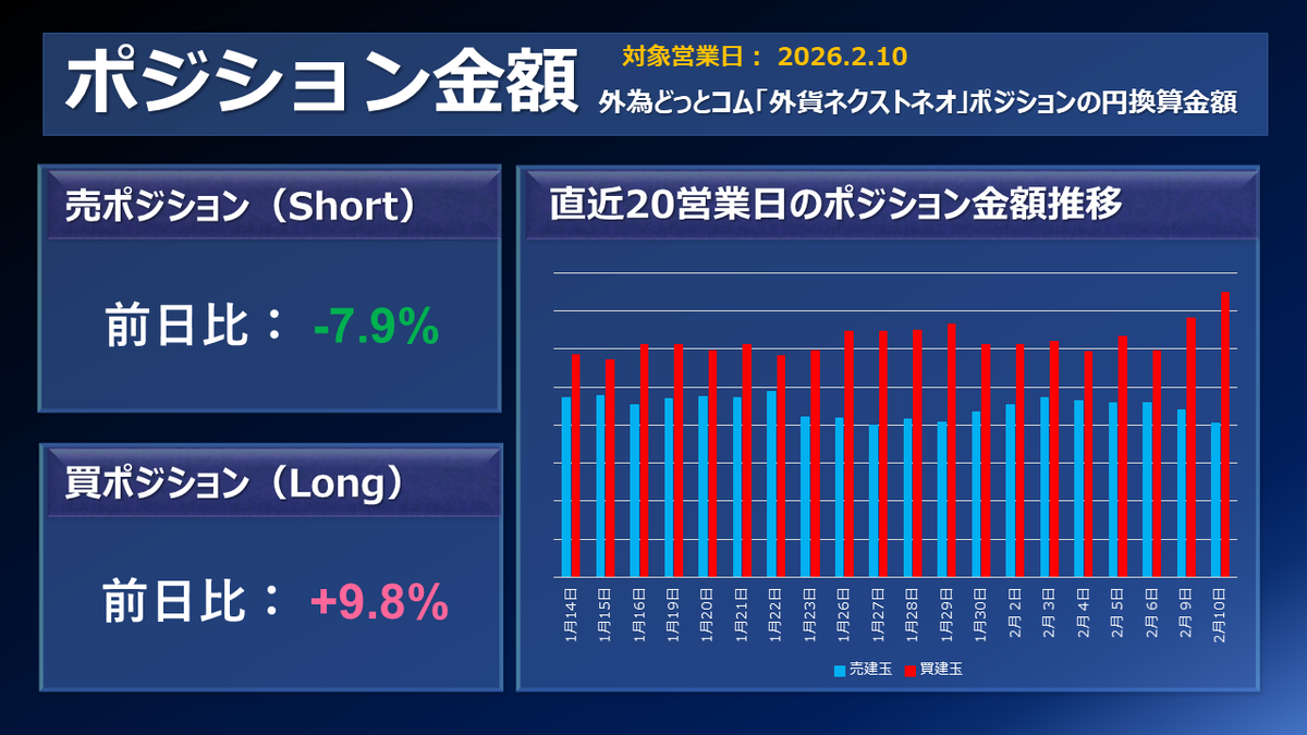 外為どっとコムのFX取引サービス「外貨ネクストネオ」主要通貨ペアのポジション増減(前日比)です。