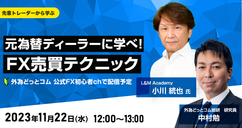 30年近く為替のディーラーとして第一線で活躍された小川 統也氏と、同じくディーラーの経験を持つ外為どっとコム総研の中村勉研究員が登壇!