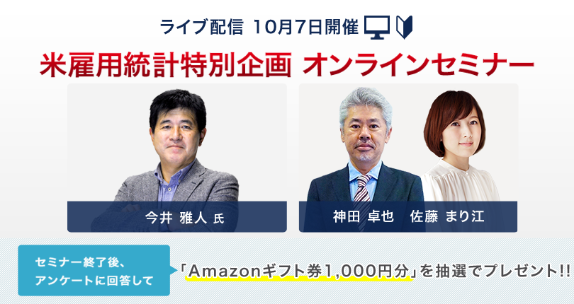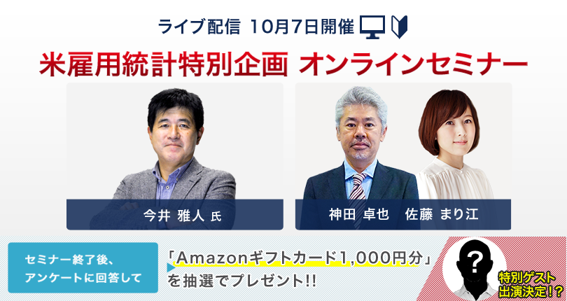 外為どっとコムでは、為替業界のみならず全てのマーケット関係者が注目する経済指標「米国雇用統計」を解説する無料オンラインセミナーを配信いたします。